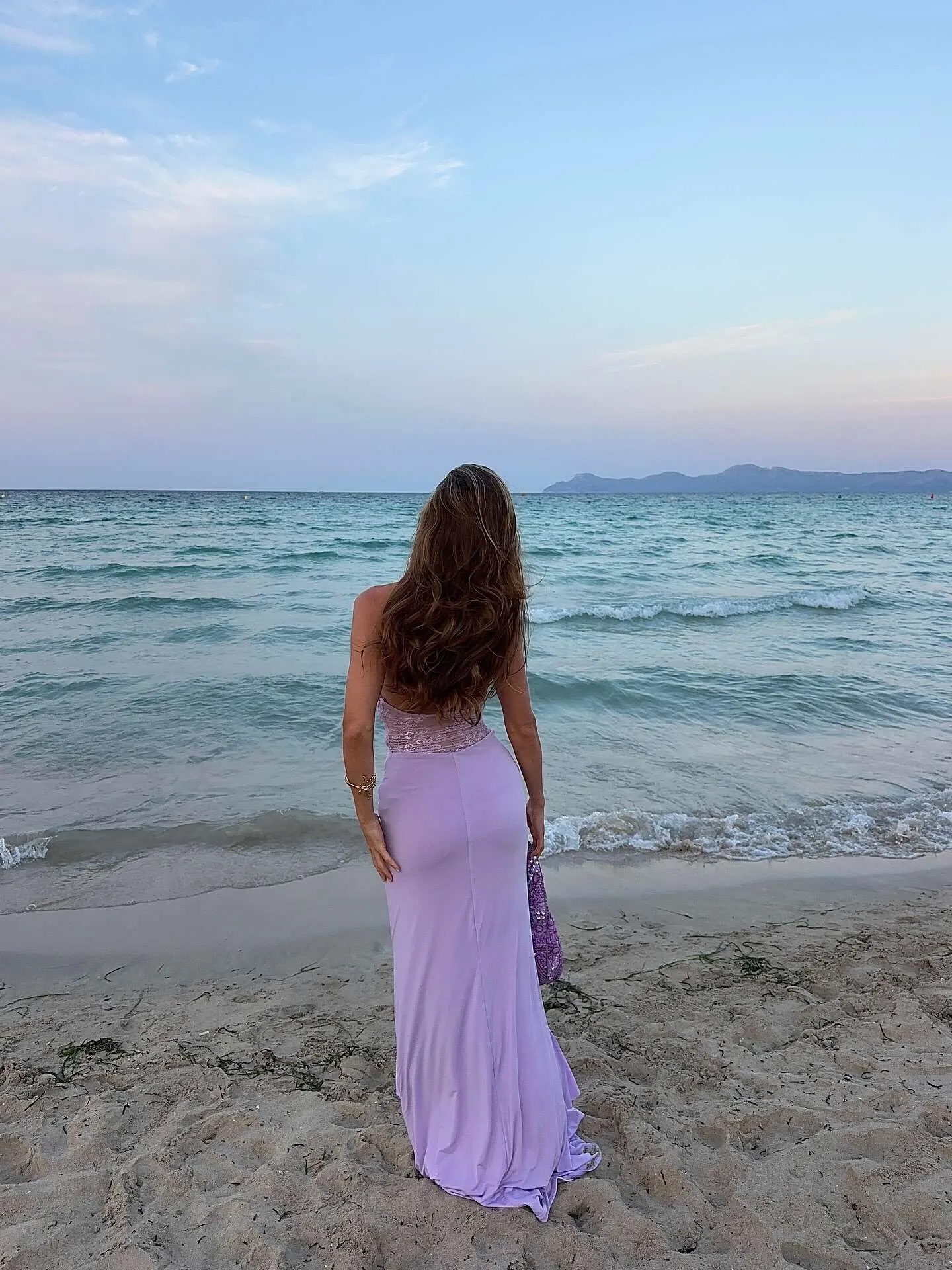 The open back adds a confident finish, while the lace detailing through the waist brings a delicate contrast to the smooth, draped fabric. Elegant yet undeniably sensual, Alessine is designed for evenings that call for something unforgettable.