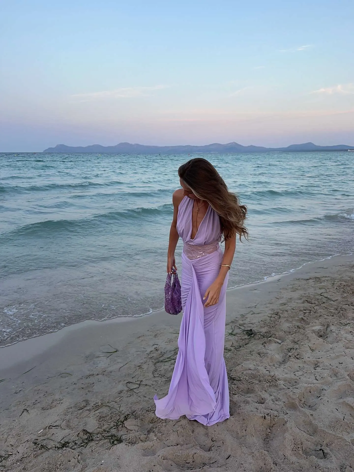 Ideal for wedding guest outfits, formal occasions, evening events and elevated partywear, this maxi dress balances softness with structure for a look that feels refined and modern.