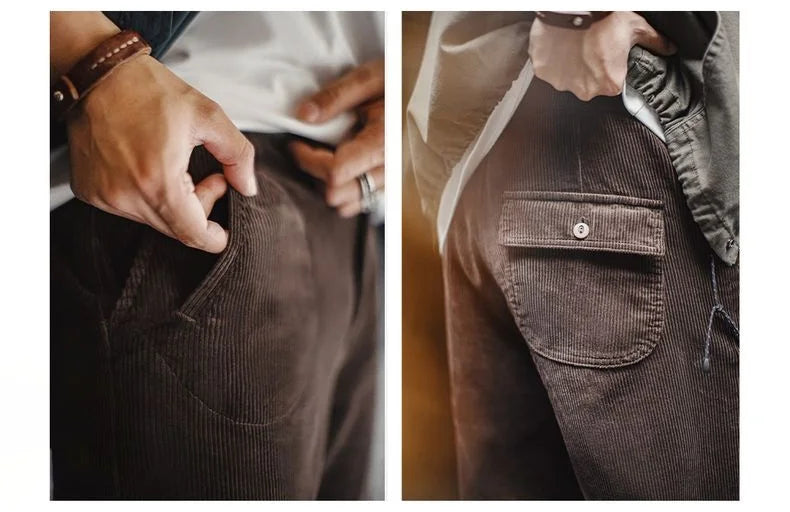With a versatile brown tone and practical design, these men’s corduroy cargo trousers pair effortlessly with shirts, knits or outerwear—making them an essential style for dependable, modern dressing.