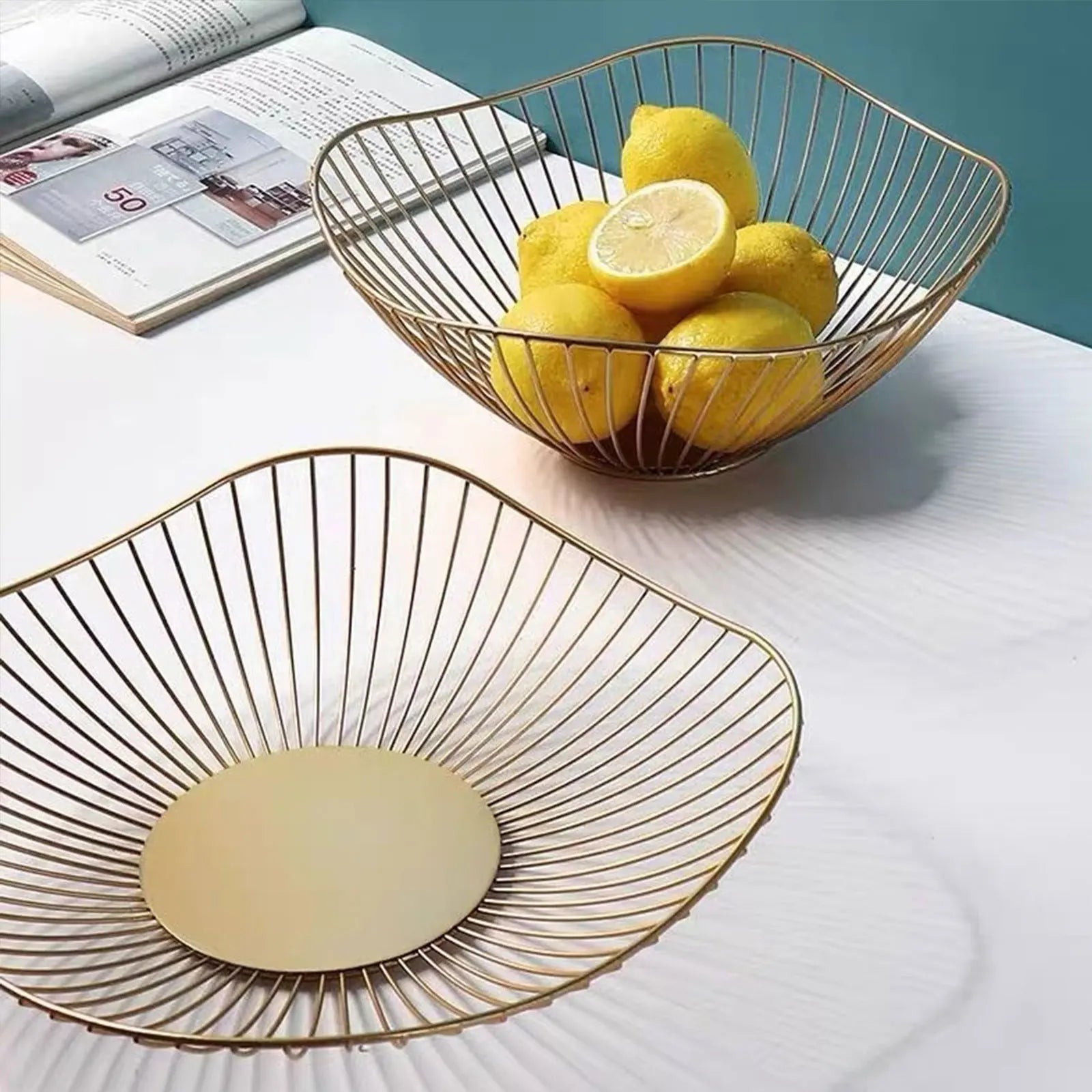 Black & Gold Metal Wire Fruit Basket – Modern Countertop Bowl for Kitchen & Dining Table