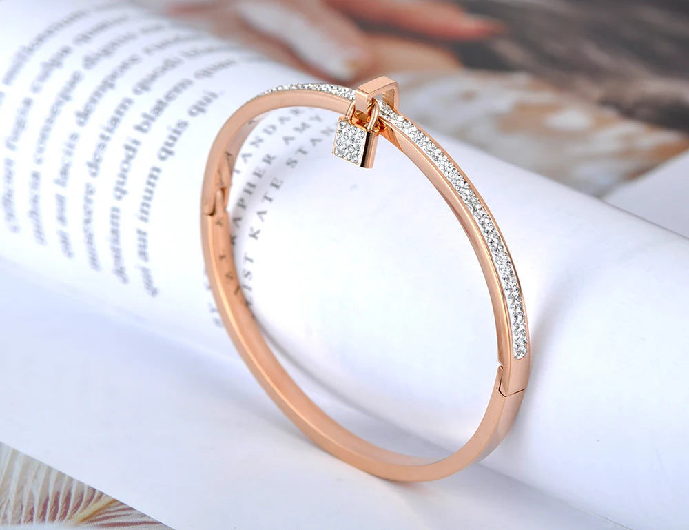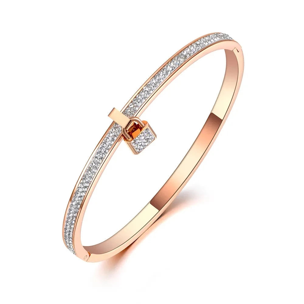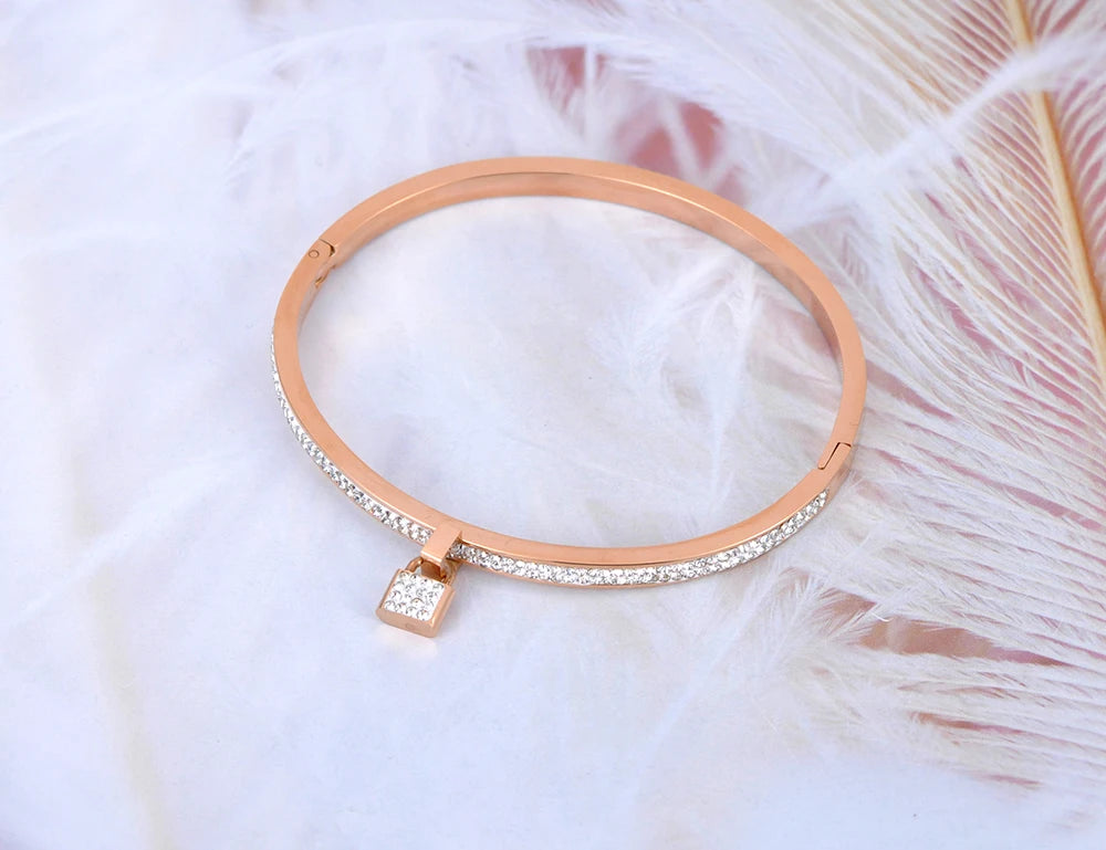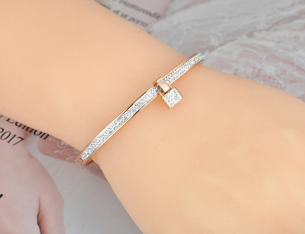 This Lock Charm Bracelet is an elegant accessory adorned with sparkling Cubic Zirconia. Its sophisticated design adds a touch of glamour to any outfit. Made with top-quality materials, it is durable and eye-catching. Perfect for any occasion, this bracelet is a must-have for those who appreciate style and sophistication.