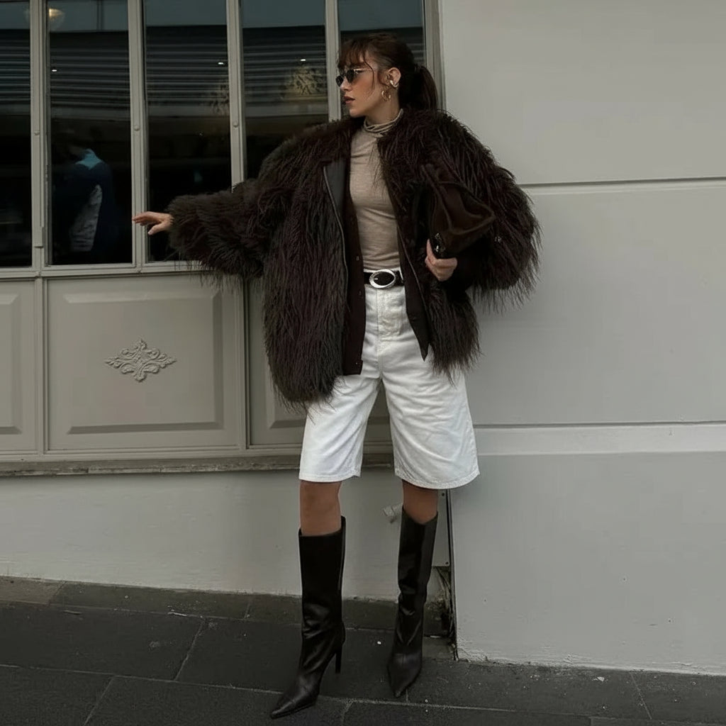 Whether you’re styling it with denim and boots or throwing it over a satin dress, Maevra is the oversized faux fur jacket that dominates this AW25 trend cycle. Cosy, oversized and unapologetically standout — it’s the textured layering piece you didn’t know you needed.