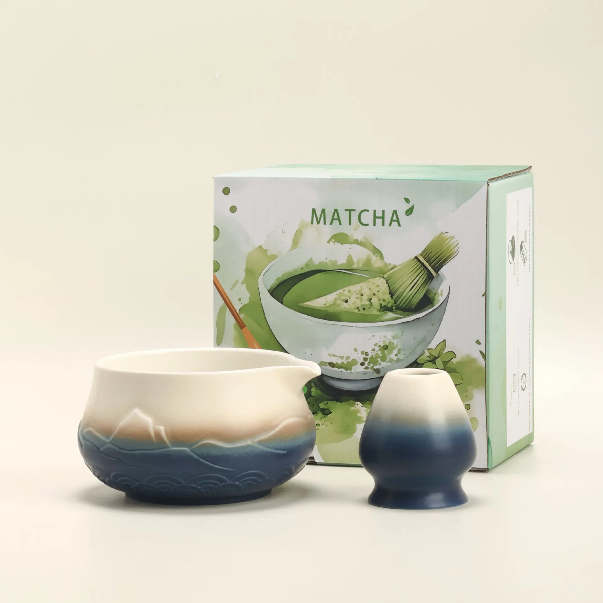 Matcha Tea Bowl & Whisk Holder Set – 2-Piece Ceramic Matcha Making Kit for Japanese Tea Ceremony, Home Brewing & Gift Giving
