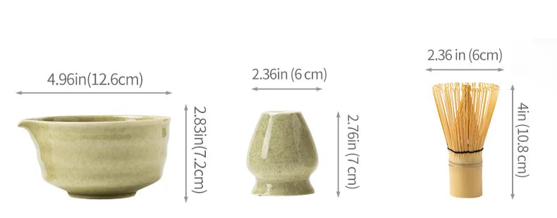 Matcha Tea Set with Ceramic Bowl & Bamboo Accessories – 4/5/6 Piece Traditional Japanese Matcha Kit in Sage Green