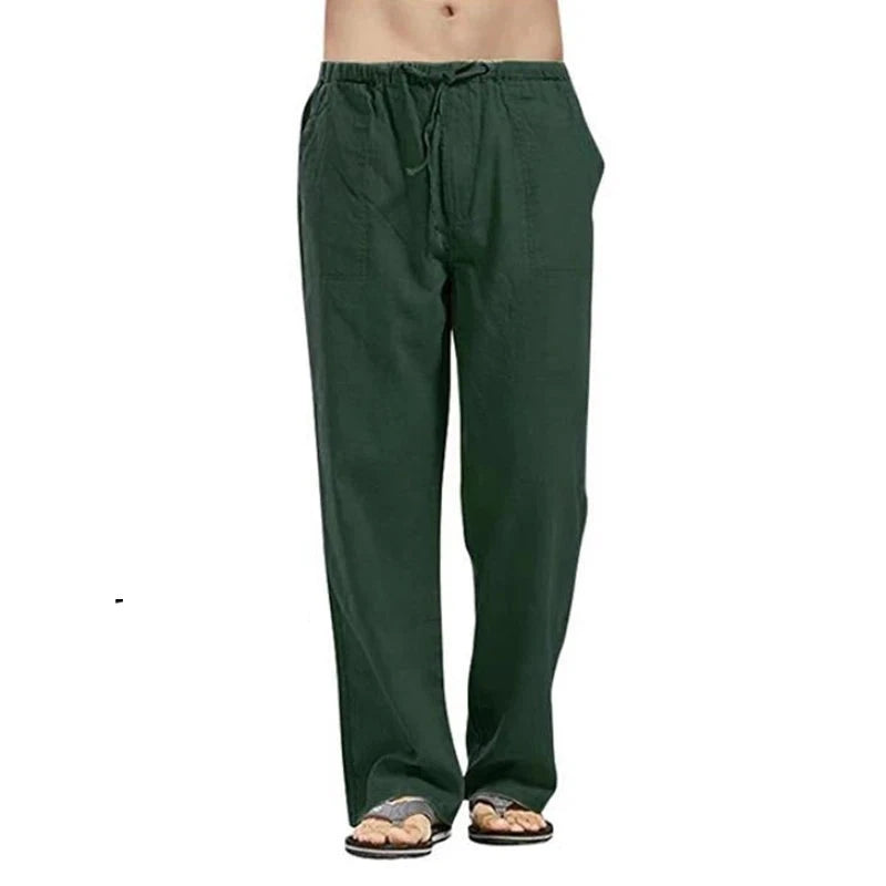 Men’s Wide-Leg Trousers – Relaxed Fit Elasticated Waist Drawstring Linen-Style Pants