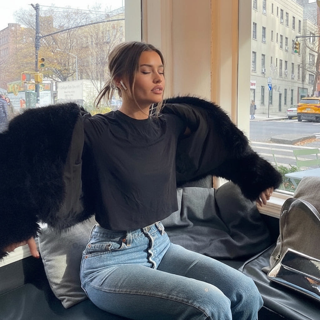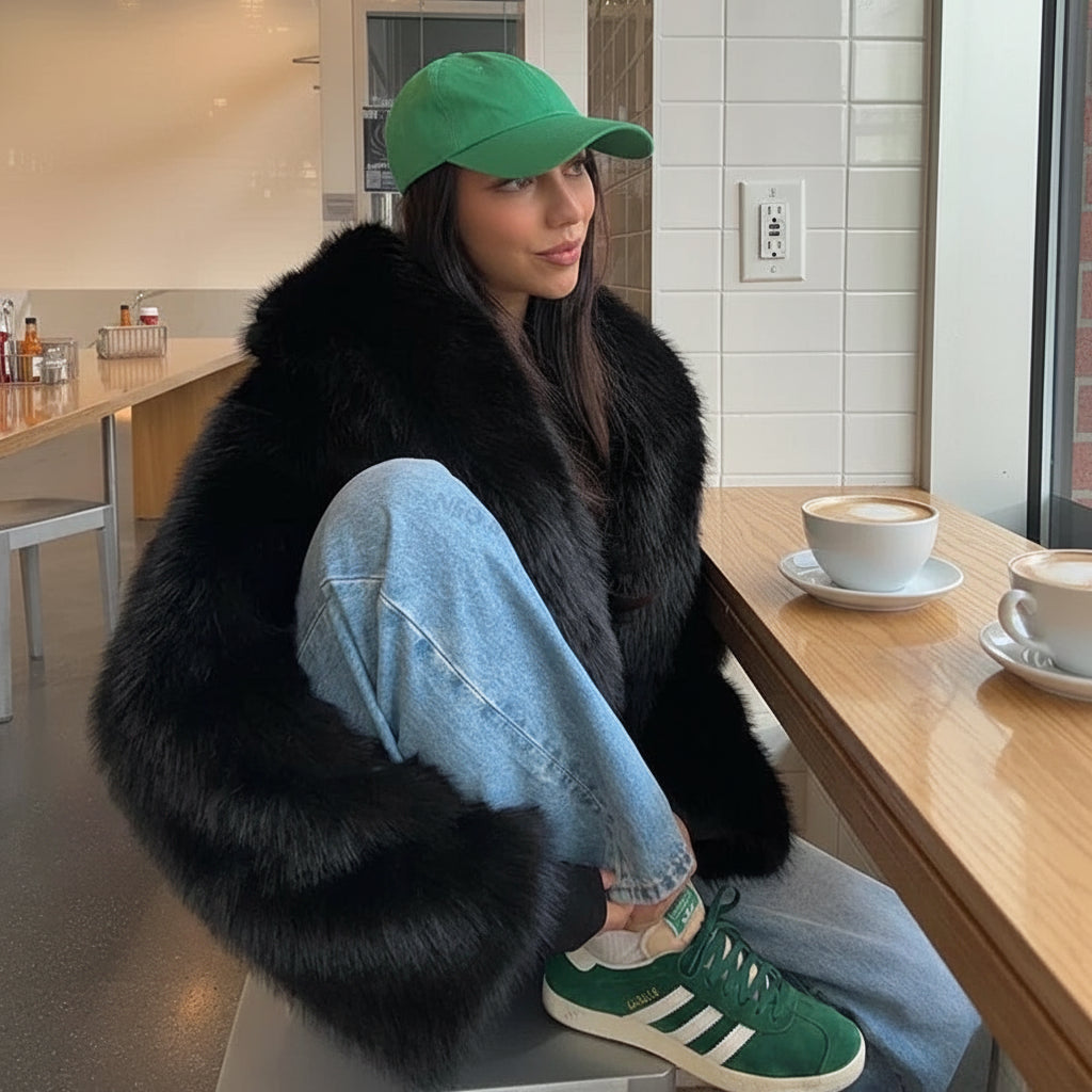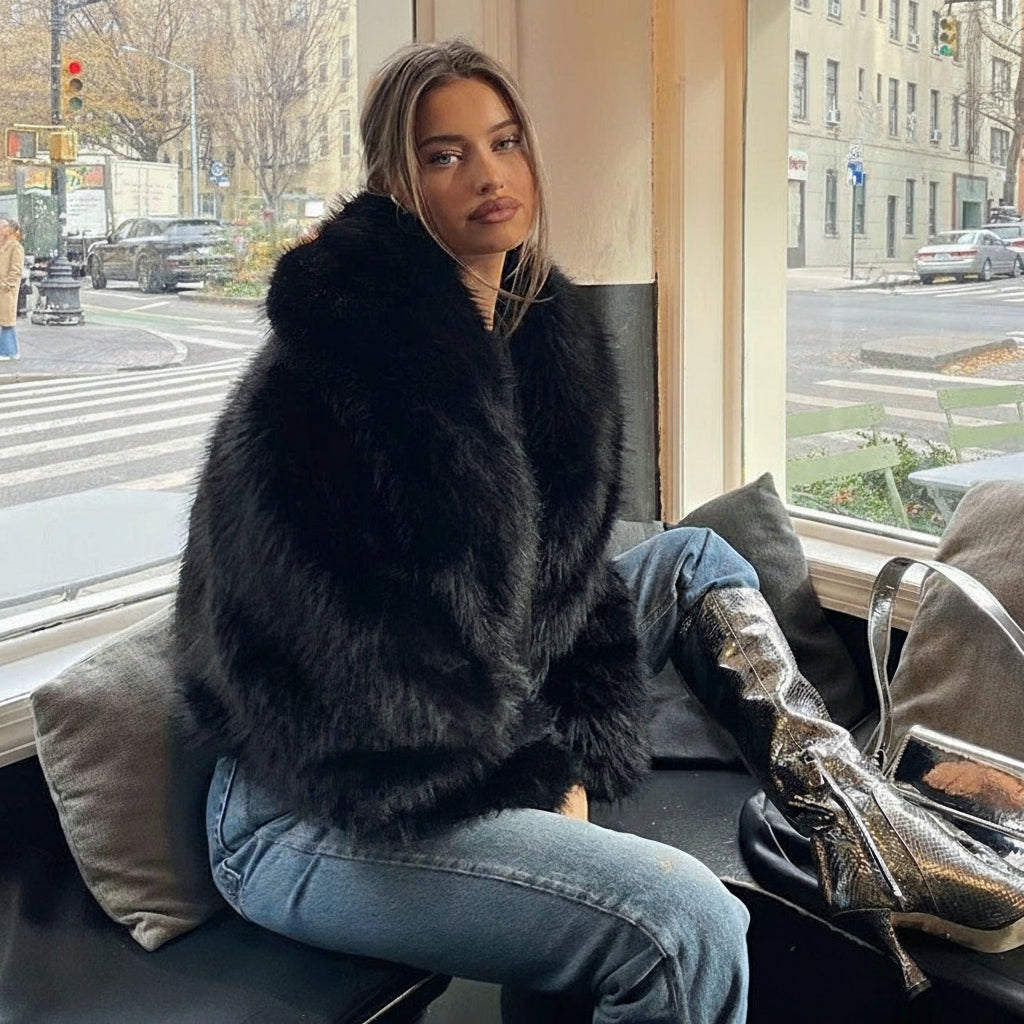 Olyssa Plush Faux Fur Cropped Jacket – Short Luxe Winter Coat for Women