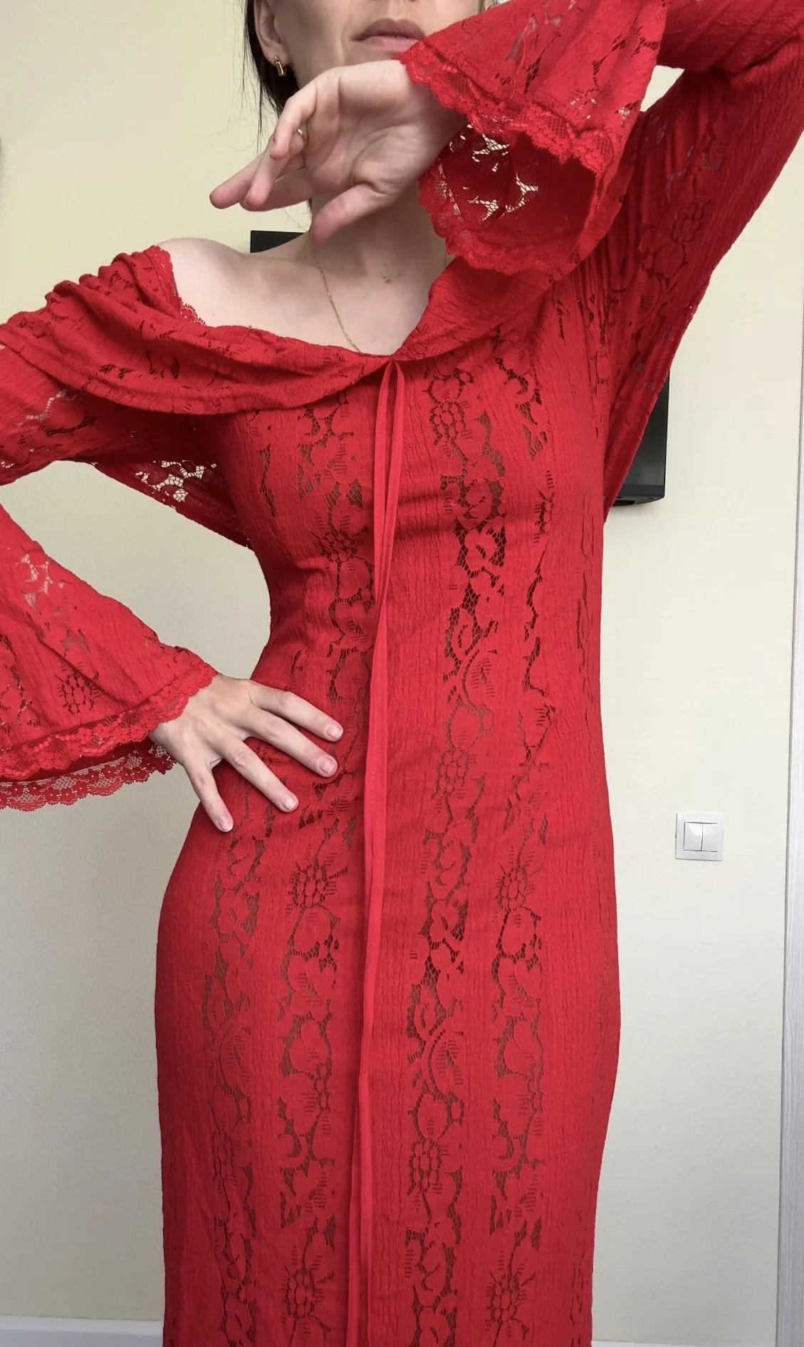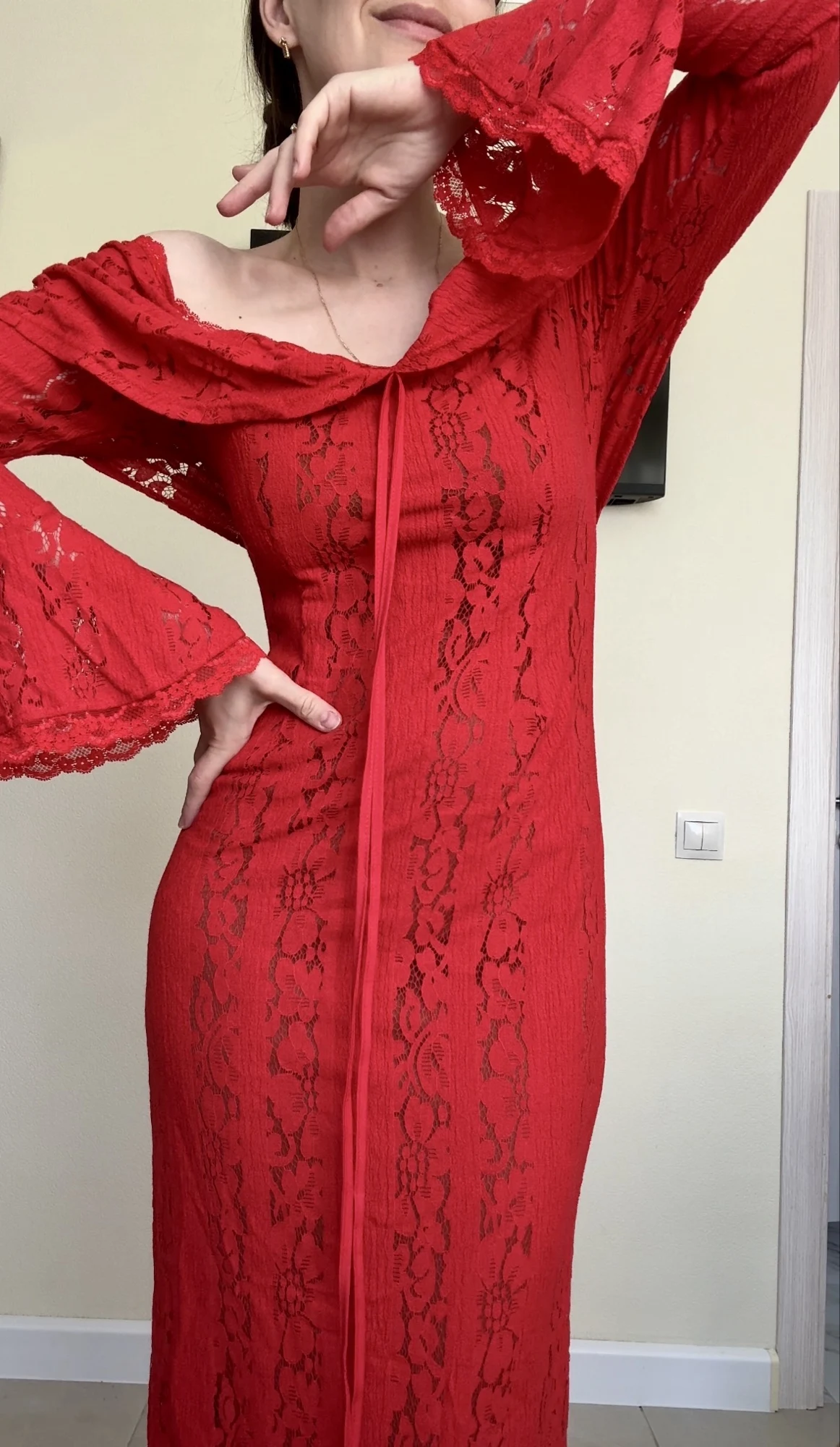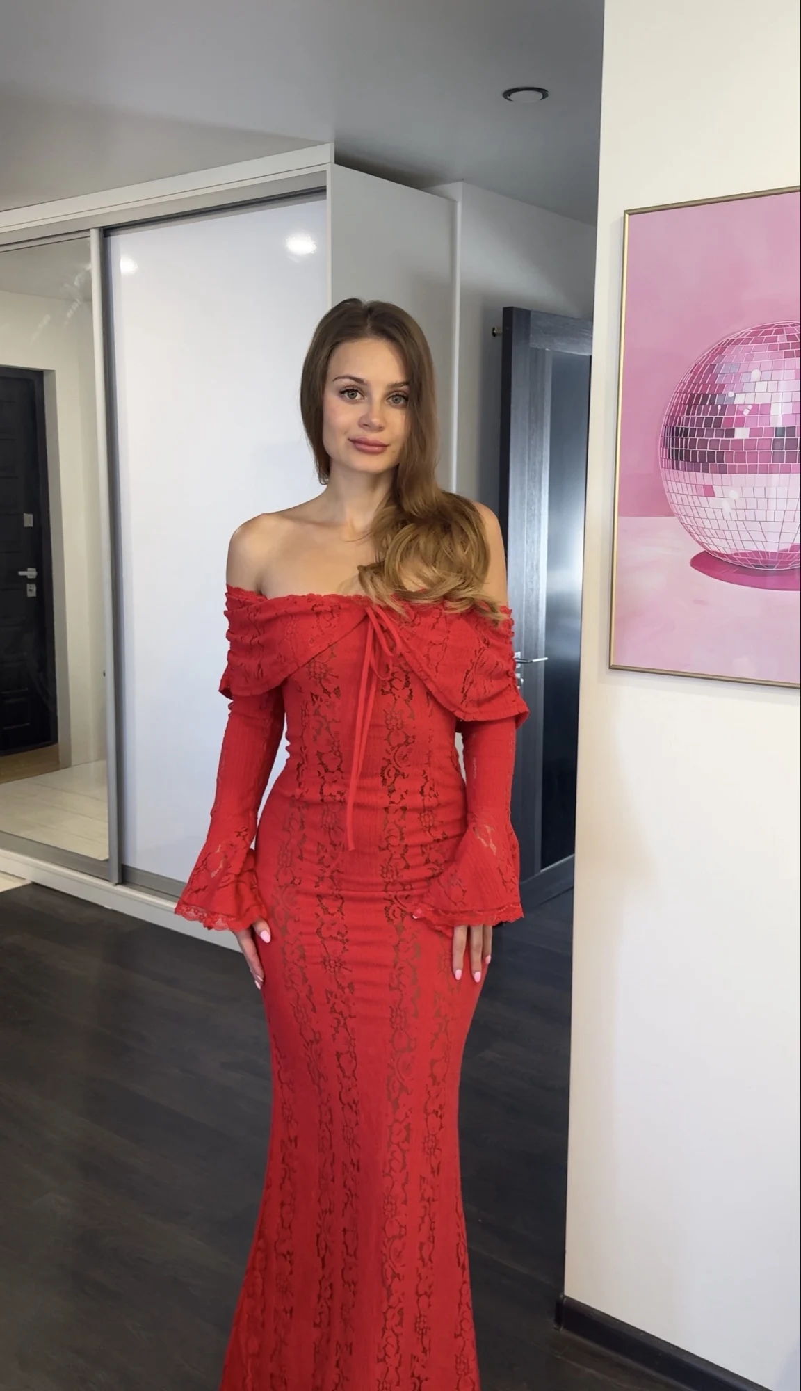 Available in ivory, red and black, Sarisse is suitable for wedding guest looks, formal dinners, black-tie events, evening receptions and holiday celebrations when the dress code calls for elevated styling. The lace detailing adds refined texture, while the maxi length creates a confident, elongated profile for dress-up moments.
