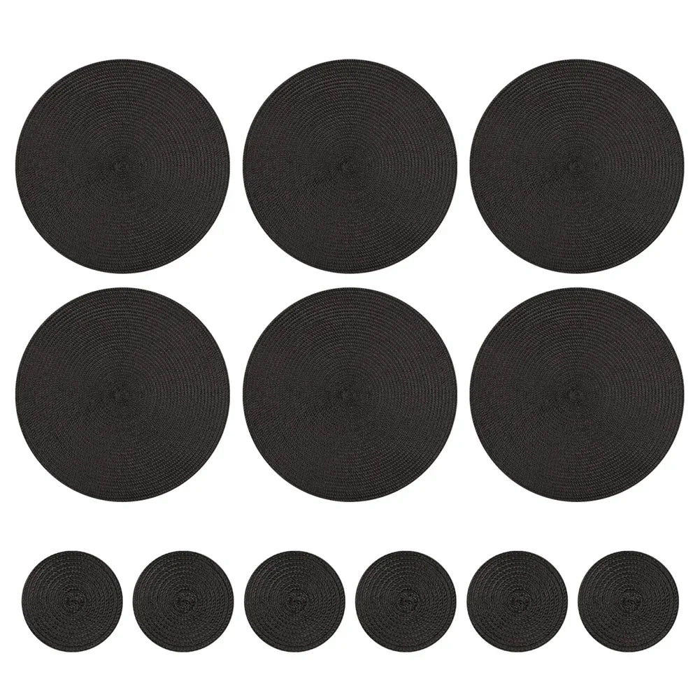 Woven Round Placemats and Coasters Set – 6-Piece Dining Table Mats