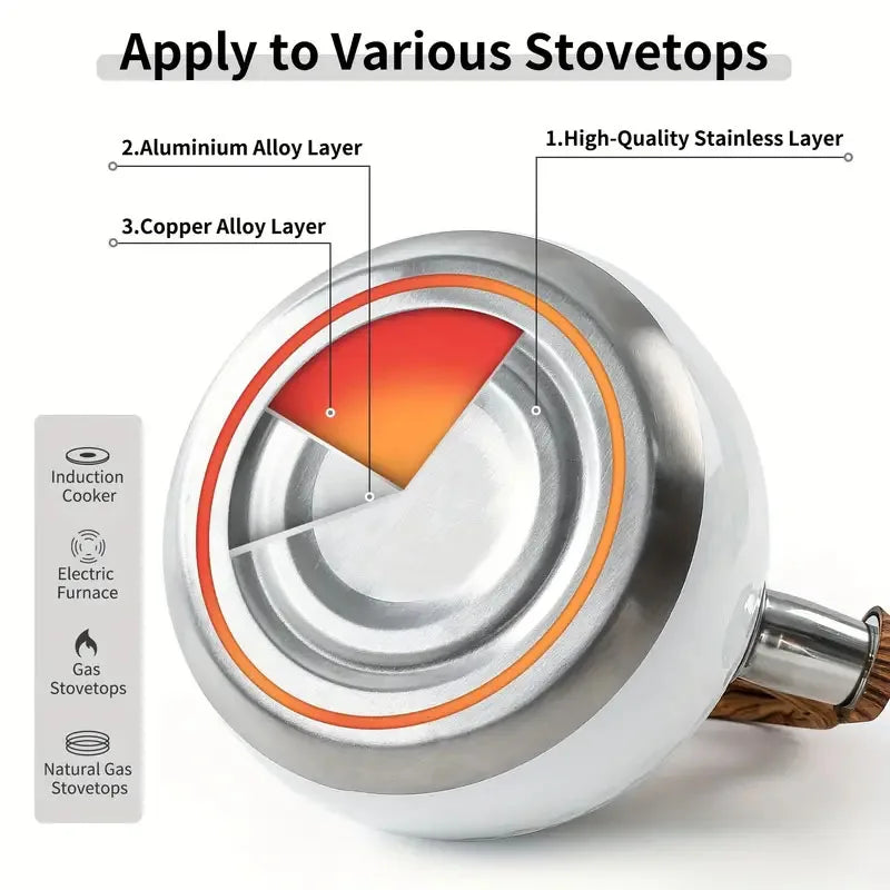 Stainless Steel Whistling Kettle – 3L Teapot with Wood-Effect Handle for Gas, Electric & Induction Hob, Available In Black, Pink, White, Beige